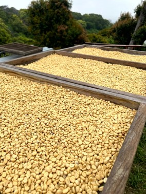 コーヒー豆を収穫、洗浄し、皮を剥いた後、ミューシレージを残し、乾燥機を使わずに彰化の日光だけに当てて、4〜6週間干すことで、豆自体の香りが非常に豊かになります。ミューシレージとは、コーヒーチェリーの果肉を取り除いたあと、種子(パーチメント)に残る粘液質の層を指します。この粘液質には糖やペクチンが豊富に含まれており、コーヒーの風味に影響を与えます。