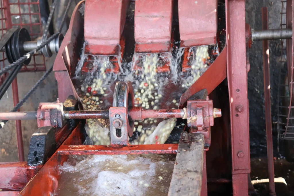 収穫されたチェリーはミルへ持ち込まれ、発酵槽で18~24時間の無水発酵を経て徹底的に洗浄。その後、アフリカンベッドで自然乾燥され、クリアなコーヒーへと仕上げられます。工程の管理は専任マネジャーのもとで一貫して行われており、安定した品質を実現しています。